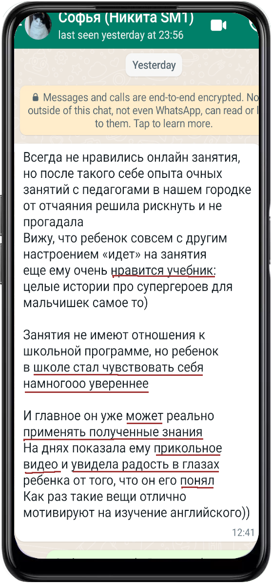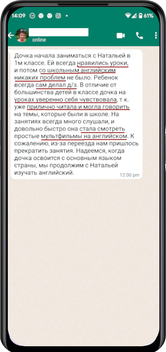 Родители получат рекомендации, как можно в дальнейшем играть и заниматься английским с учителем и самостоятельно, чтобы дети не только не имели проблем в школе, но и смогли использовать язык как инструмент: посмотреть мультфильм, спеть песню, найти что-то в Google, послушать блогера и т.д.